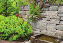 Широкая лестница сделана из больших бетонных плит. Такие ступеньки могут быть выполнены в разных вариациях – все зависит от стиля сада. Шаговые плиты на газоне помогут не намочить ноги после дождя. Бетонные «камни» сделаны в виде массивных плит скальных пород.…